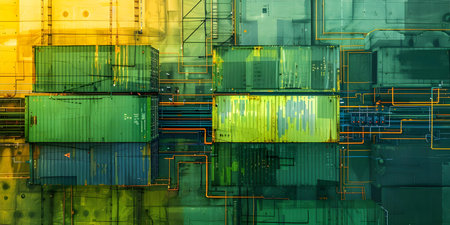 Urban Jungle Vibrant Shipping Containers Reach for the Blue Sky in Industrial Metropolis