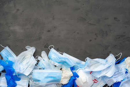Medical used dirty ffp protective mask and gloves garbage trash,covid coronavirus disease equipment