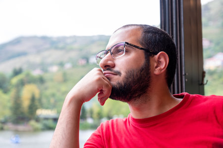 Thoughtful young man gazing out the window