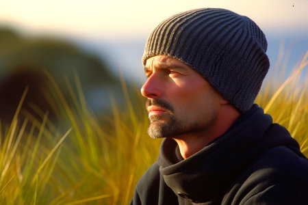 Pensive Man Looking into Distance at Dusk