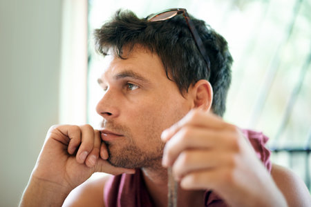 portrait of an adult pensive man with a beard