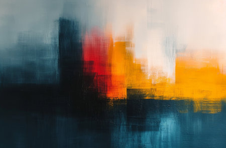 An abstract artwork featuring a dynamic interplay of colors with bold brush strokes. This piece showcases vibrant hues and rich textures that inspire creativity.