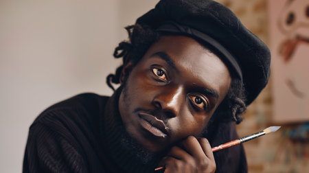 Black male artist with beret and paintbrush