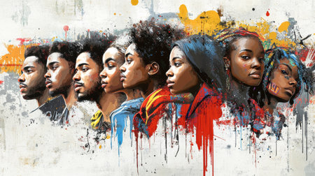 A vibrant showcase of creativity features young African Americans in an urban setting, highlighting city life through art and graffiti.