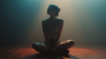 Contemporary dance artistry: female performer in fashionable outfit dancing through atmospheric haze