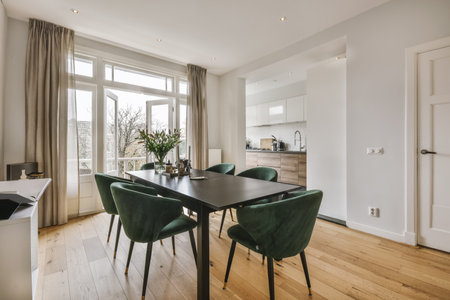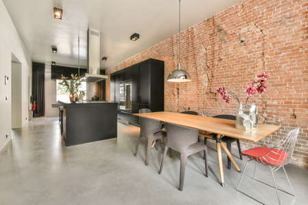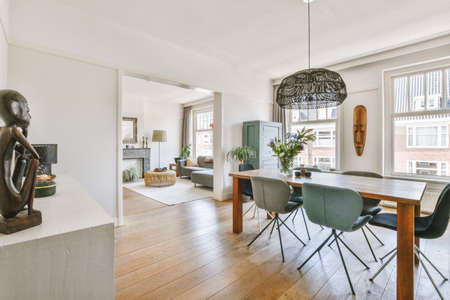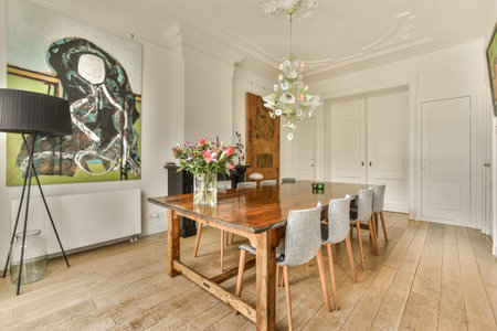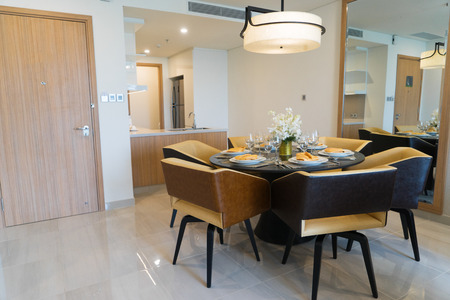 Modern dining room with dining table at home