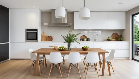 Dining table next to kitchen in contemporary house