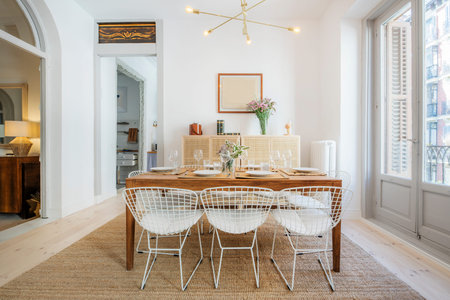 Bright dining room with decorative table and chairs