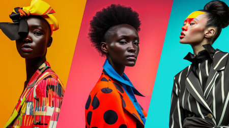 Fashion-forward individuals striking powerful poses, with bold colors and patterns emphasizing their confidence.