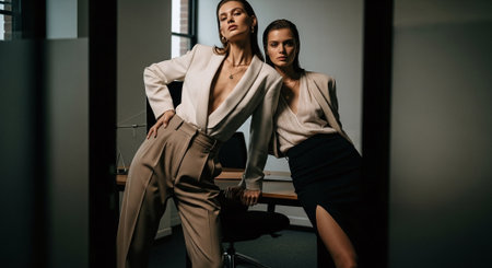 Beauty clothes couple caucasian women trend person studio female young fashionable pretty stylish