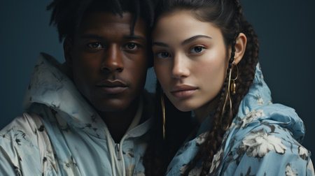 Love and diversity concept with a dark-skinned man and a white-skinned woman - generated by AI