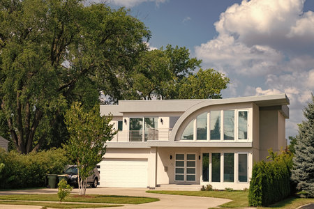 Neighborhood architecture. Property in neighborhood. Residential property house. Residence architecture. Suburban neighborhood. Suburban house architecture. Private family house. Housing market