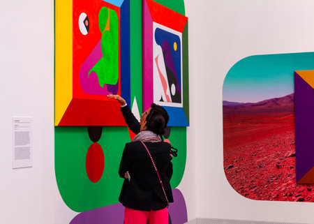 Exploring art with augmented reality: a visitor interacts with digital overlays in a museum gallery