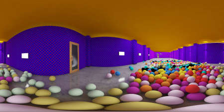 3d illustration spherical 360 vr degrees, a seamless panorama of the room and interior design for business room playroom with colorful balls (3D rendering)