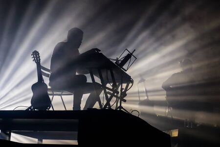 A musician playing synthesizer during the concert