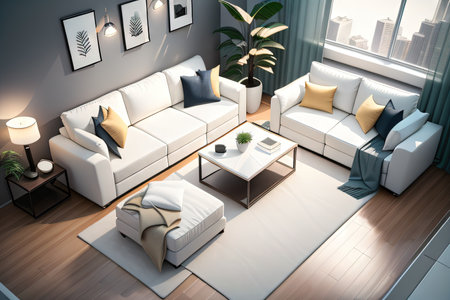 Interior of modern living room with white sofa. generative ai