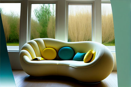 cozy ergonomic sofa in the bright interior of the future. Ai generative