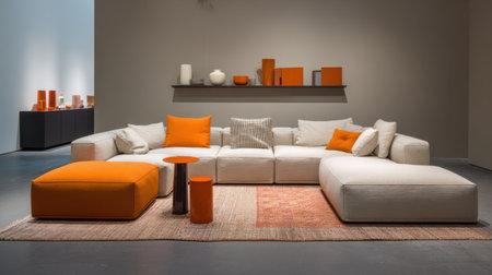 Interior of modern living room with orange sofa. generative ai