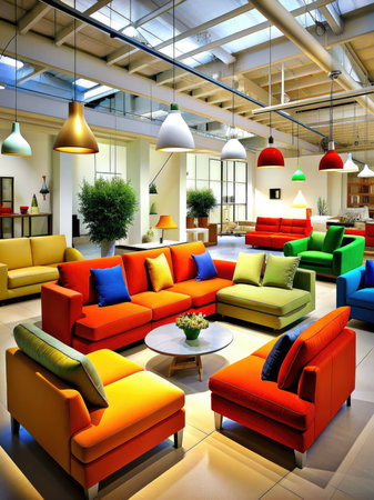 Modern furniture store interior with stylish sofas and couches on display perfect for a home makeover. Concept Furniture Store, Modern Interior Design, Stylish Sofas, Home Makeover, Couches