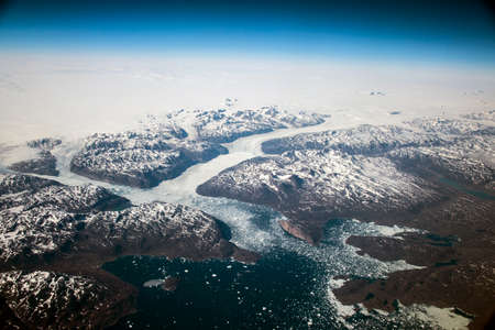 Aerial View from Airplane of Canadian Mountain Landscape, Tantalus Range. Sunny Sunset Art Render. Taken between Squamish and Whistler, North of Vancouver, BC, Canada.
