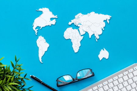conquering global markets conceptual still-life, world map and text on to do list on business desk with continents to tick off