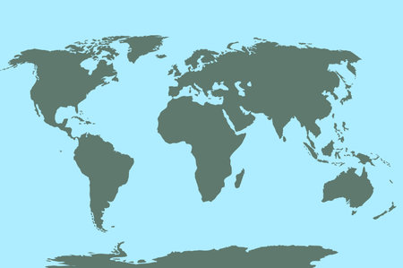 Vector map of the world. Oceans and continents on a flat projection. The globe on the plane. Vector illustration