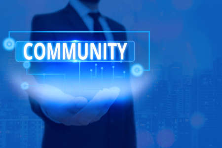 Writing note showing Community. Business concept for group of showing with a common characteristics living together