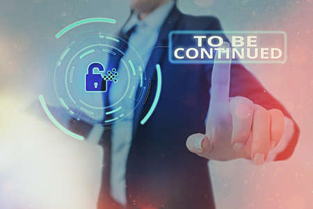Conceptual hand writing showing To Be Continued. Concept meaning indicate that the story continues in the next episode Graphics padlock for web data security application system