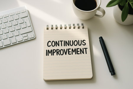 Top view of Continuous Improvement on white notepad representing Practices to Drive Innovation Across All Departments