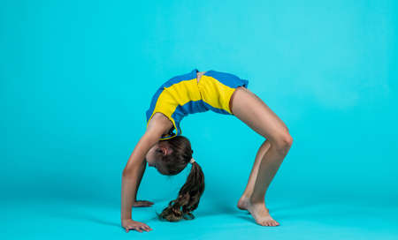 happy kid in sport training clothes workout, acrobatics