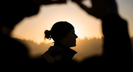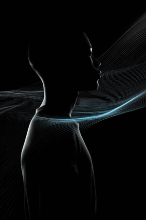 A striking profile silhouette of a young person showcasing textured curly hair, bathed in soft, glowing light that enhances the serene and artistic ambiance.