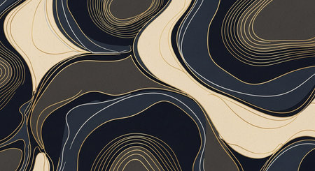 Organic showing abstract organic swirling lines and shapes in dark blue cream and gold with textured background. resolution