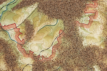 Close up of a topographic map highlighting detailed terrain features and landmarks with clarity
