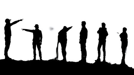 Silhouette of a group of people with different facial expressions.
