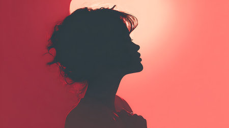 Silhouette of a beautiful woman in profile against a red background