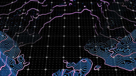 Abstract technological image of glowing topographical map. The concept of digital data. 3D illustration