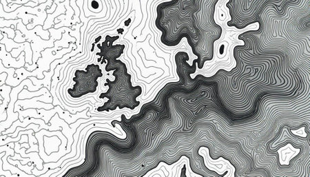 A monochrome illustration depicting an artistic topographic map. The detailed contoured lines create an intricate representation of a landscape, evoking a sense of exploration and topography.