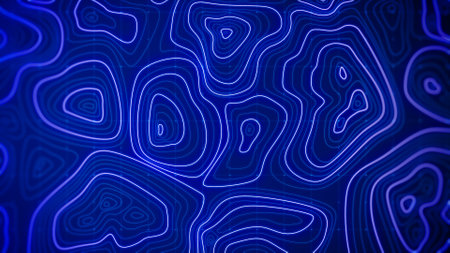 Displaying abstract contour line pattern flowing across deep navy background, creating depth. Modern, minimalist, digital art, design, visualization, aesthetic, graphic