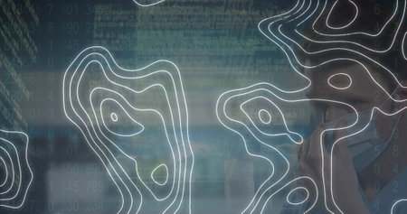 Terrain big data visualization. Futuristic map infographic. Complex topographical data graphic visualization. Abstract data on elevation graph. Monochrome geographical data image