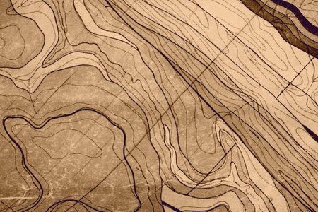 Abstract background with wavy lines of a geological map in beige and brown tones. Texture of relief and topographic contours for wallpaper and design