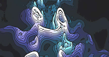 Abstract background of topographic map concept. Contour map stripes. Valleys and mountains. Geography concept. Wavy backdrop. Magic neon light curved swirl line. 3D illustration