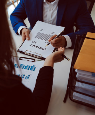 businessman is negotiating, advising, and explaining the matter of the contract to be agreed to sign the contract.