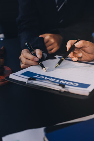 business people and lawyers discussing contract papers.Legal planning. Concepts of law, advice, legal services