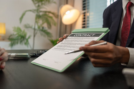 Selective focus of contract and man holding it
