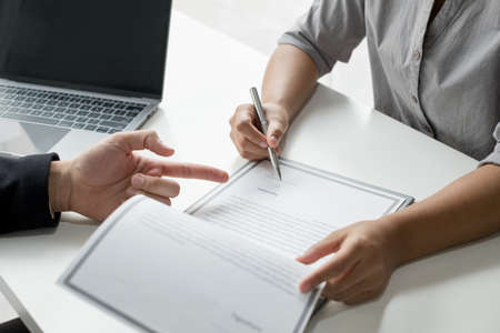 Sign a document, Signing of employment contract documents, Applicants are legally selected to work in the company, Employment and selection of new staff representatives concept.