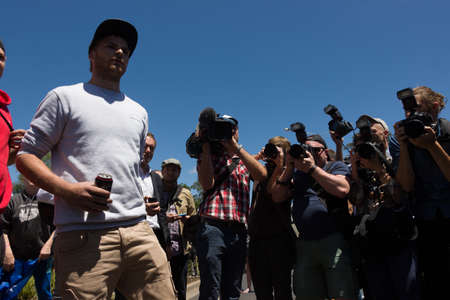 Minsk, Belarus - July 30, 2020: group of photographers works at the event