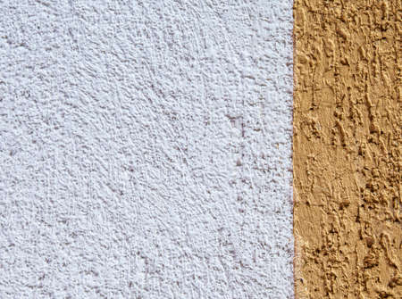 Yellow and grey concrete wall as texture or background. Geometric style. Plastered surface. Poor-quality walls painting.