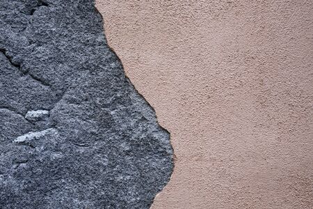 Concrete wall with cracked decorative plaster. Rough surface plaster texture with copy space for design
