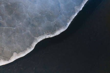 Half frozen lake scene shot by drone.