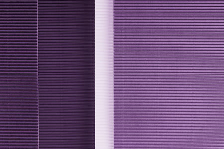 Purple corrugated paper texture. Geometric shapes and lines. Minimalist background. Flat lay. Copy space.